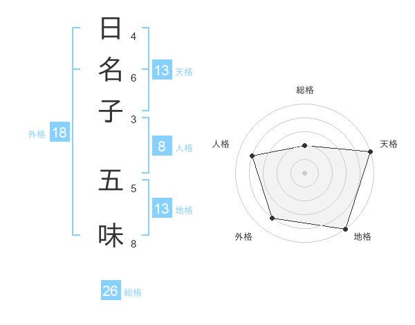 日名子 五味さんの地格は13画の5点!