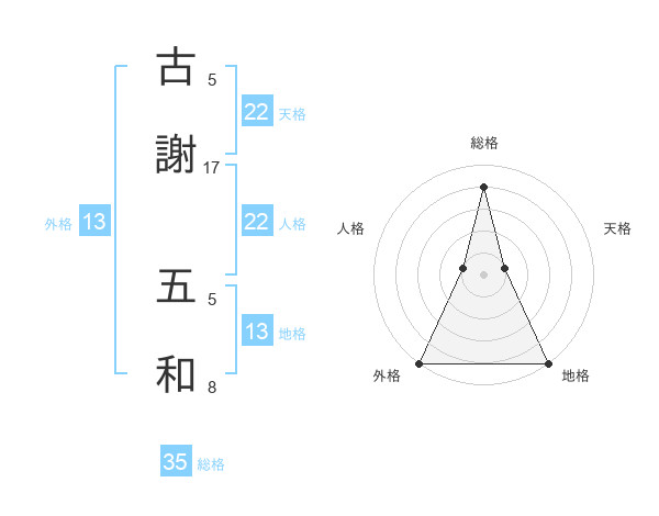 古謝 五和さんの外格は13画の5点!
