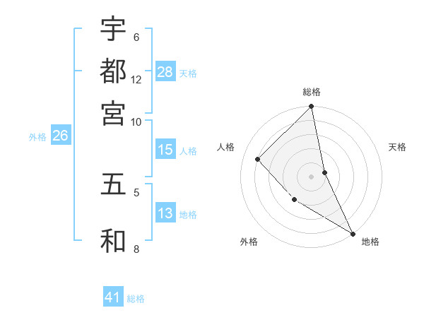 宇都宮 五和さんを姓名の画数から五運を鑑定