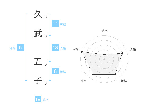 久武 五子さんの総格は19画の1点!