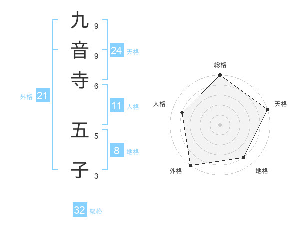 九音寺 五子さんを姓名の画数から五運を鑑定