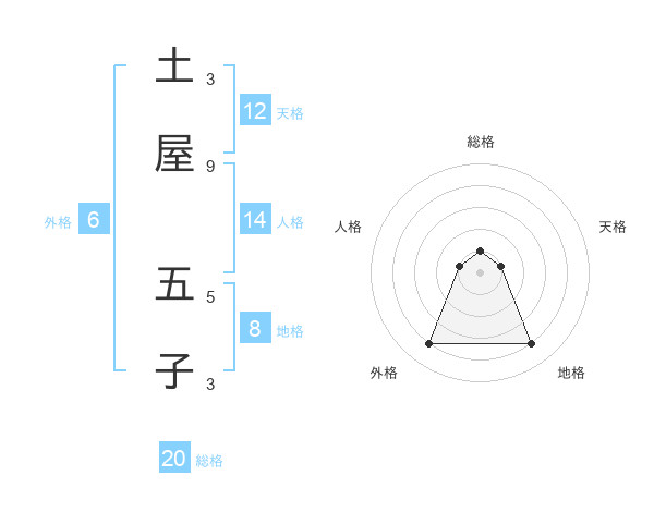 土屋 五子さんの総格は20画の1点!