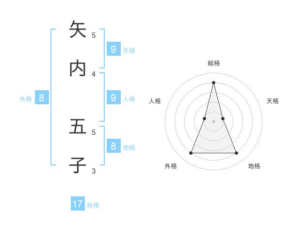 矢内 五子さんの総格は17画の4点!