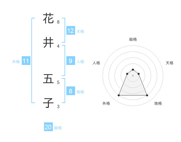 花井 五子さんの総格は20画の1点!