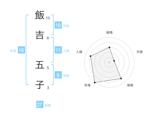 飯吉 五子さんの総格は27画の3点!