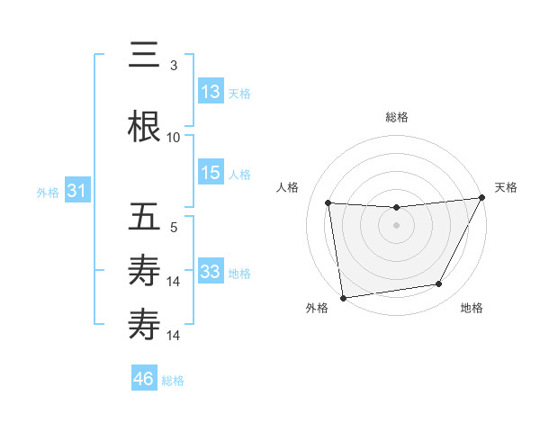 三根 五寿寿さんを姓名の画数から五運を鑑定