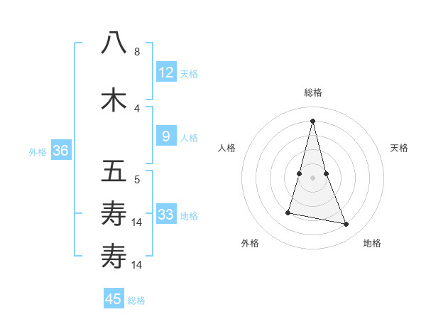 八木 五寿寿さんの総格は45画の4点!