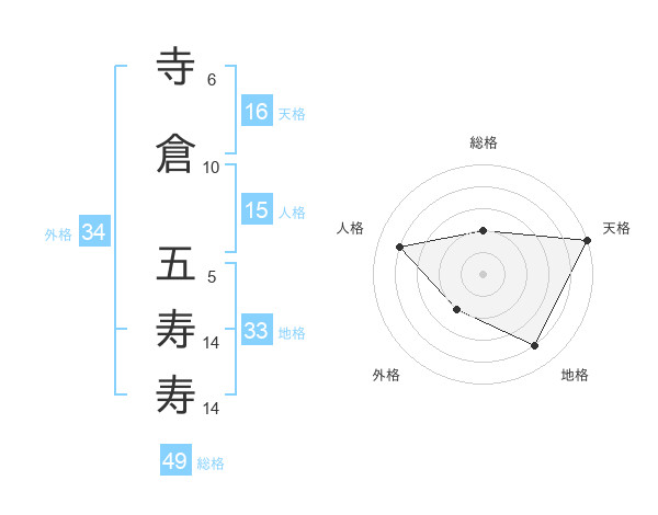 寺倉 五寿寿さんを姓名の画数から五運を鑑定