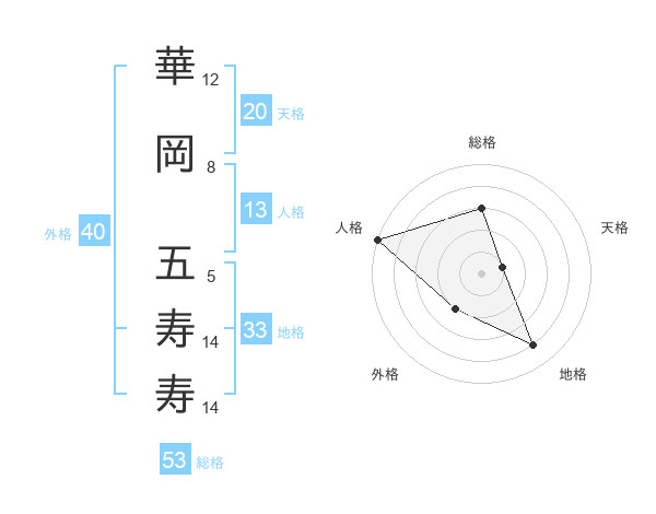 華岡 五寿寿さんの総格は53画の3点!