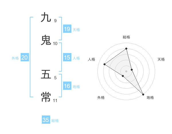 九鬼 五常さんの総格は35画の4点!