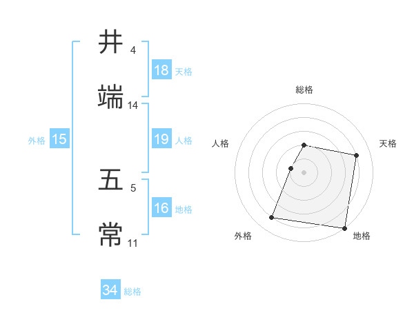 井端 五常さんの総格は34画の2点!