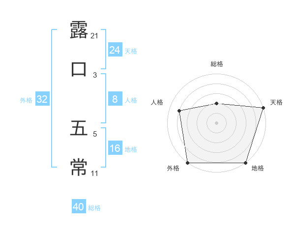 露口 五常さんの天格は24画の5点!