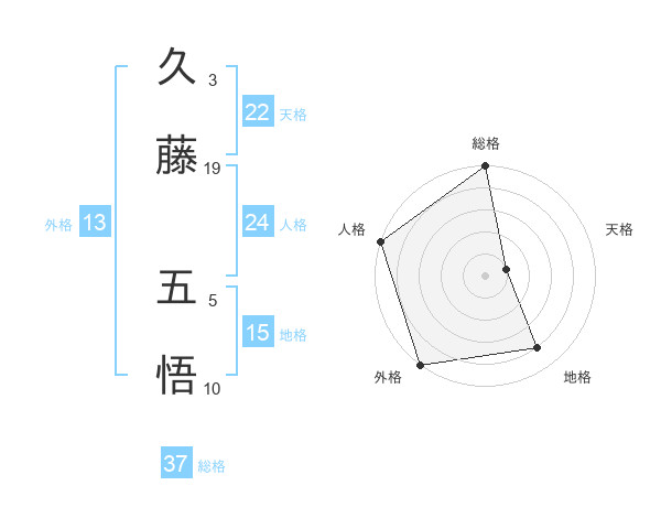 久藤 五悟さんの総格は37画の5点!