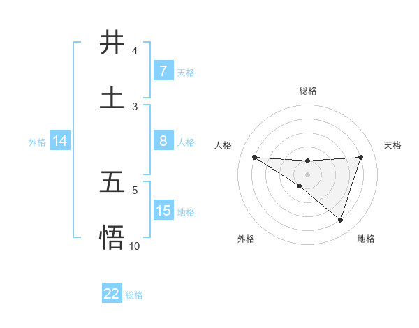 井土 五悟さんの総格は22画の1点!