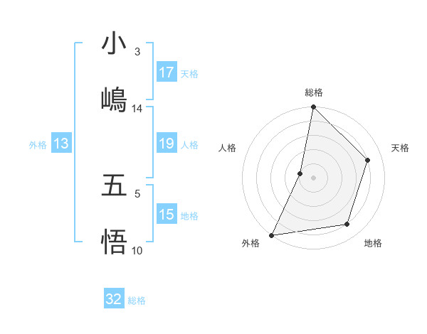 小嶋 五悟さんの天格は17画の4点!