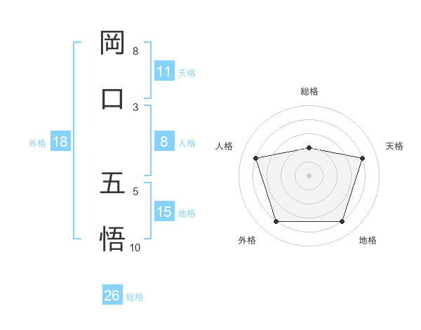 岡口 五悟さんの外格は18画の4点!