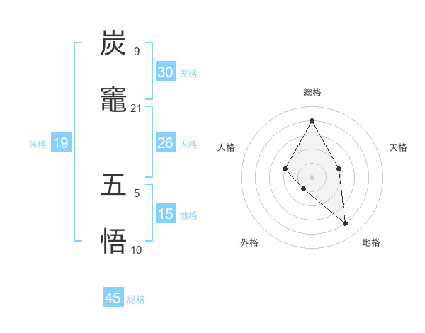 炭竈 五悟さんの総格は45画の4点!