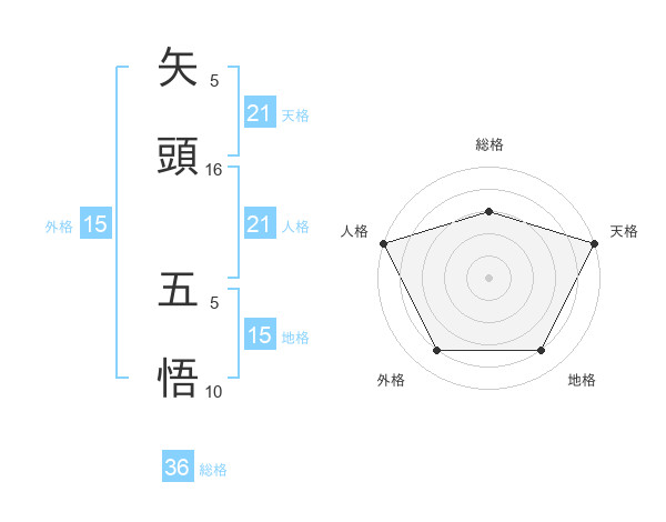 矢頭 五悟さんの天格は21画の5点!
