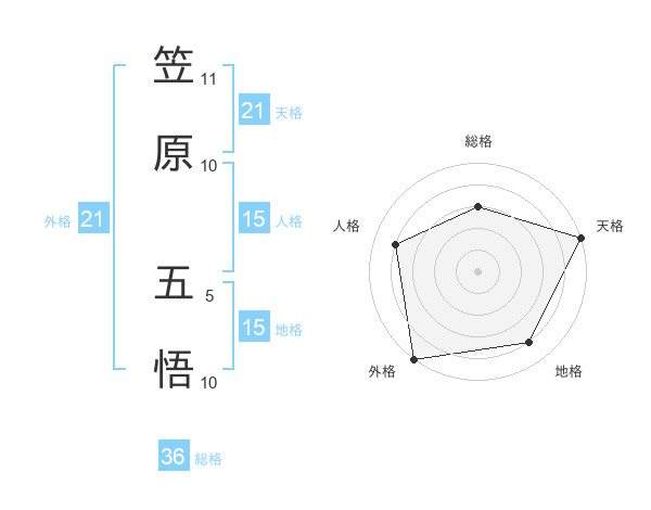 笠原 五悟さんの天格は21画の5点!