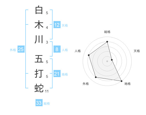 白木川 五打蛇さんを姓名の画数から五運を鑑定