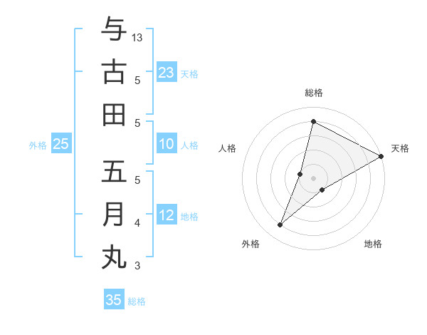 与古田 五月丸さんを姓名の画数から五運を鑑定