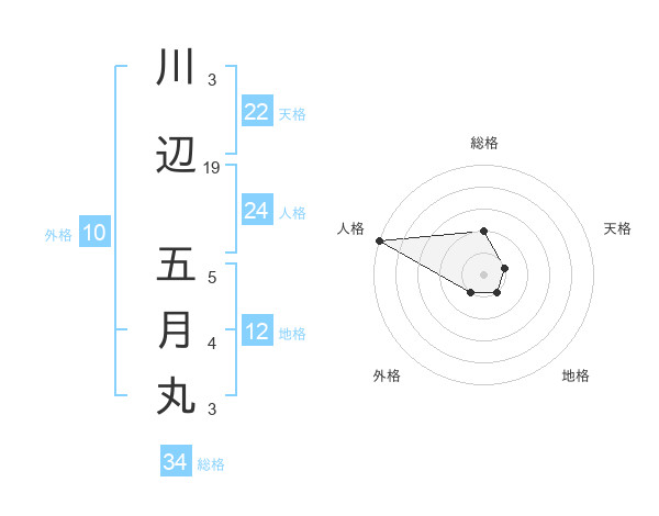 川辺 五月丸さんを姓名の画数から五運を鑑定