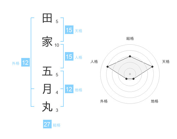 田家 五月丸さんを姓名の画数から五運を鑑定