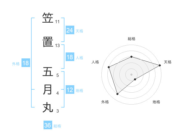笠置 五月丸さんを姓名の画数から五運を鑑定