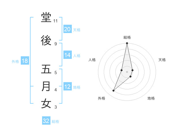堂後 五月女さんを姓名の画数から五運を鑑定