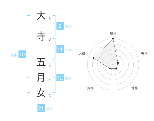 大寺 五月女さんを姓名の画数から五運を鑑定