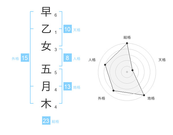 早乙女 五月木さんを姓名の画数から五運を鑑定
