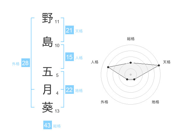 野島 五月葵さんを姓名の画数から五運を鑑定