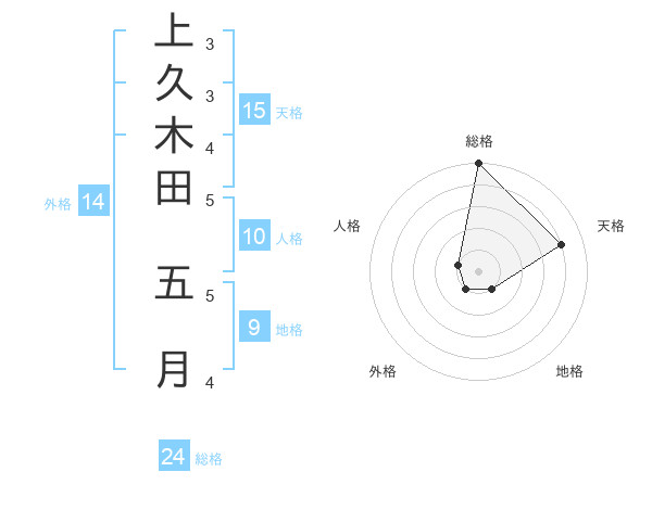 上久木田 五月さんを姓名の画数から五運を鑑定