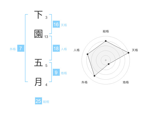 下園 五月さんの天格は16画の5点!