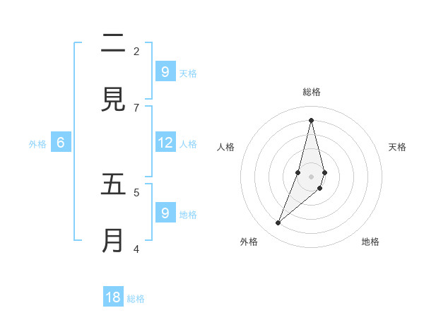 二見 五月さんの総格は18画の4点!