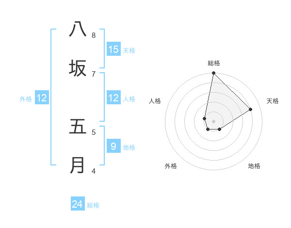八坂 五月さんの天格は15画の4点!