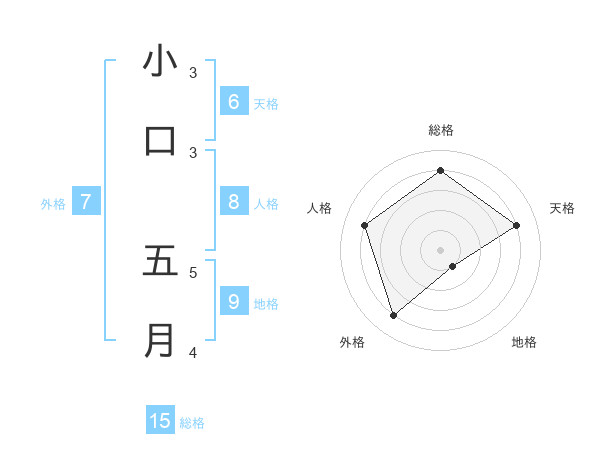 小口 五月さんの総格は15画の4点!