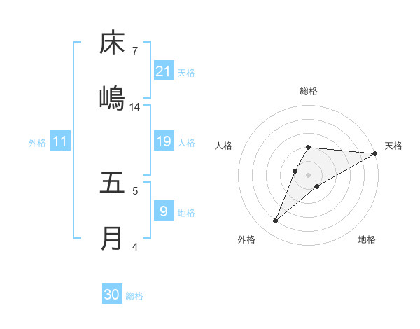 床嶋 五月さんを姓名の画数から五運を鑑定