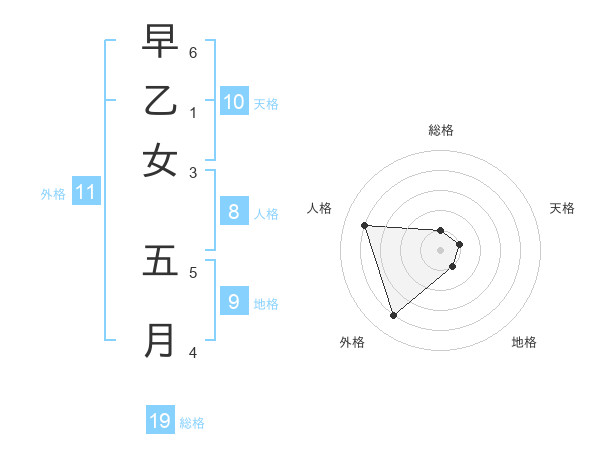早乙女 五月さんの総格は19画の1点!