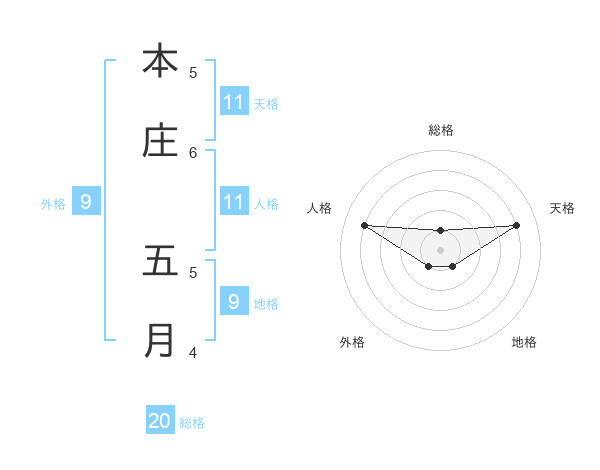 本庄 五月さんの総格は20画の1点!