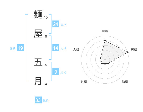 麺屋 五月さんを姓名の画数から五運を鑑定