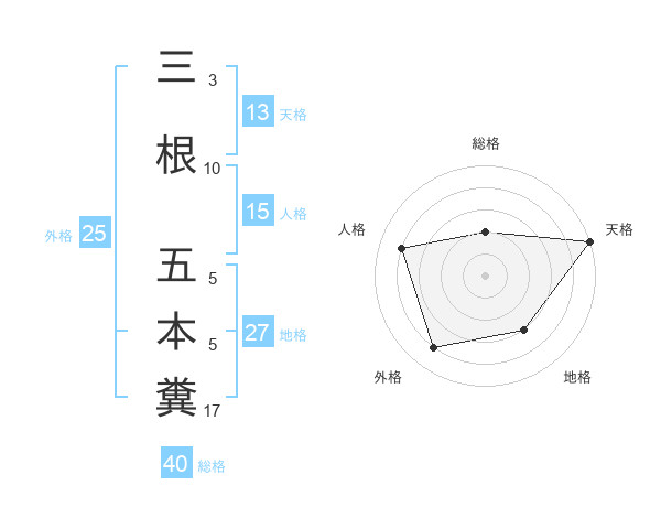 三根 五本糞さんを姓名の画数から五運を鑑定