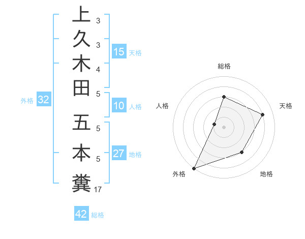 上久木田 五本糞さんを姓名の画数から五運を鑑定