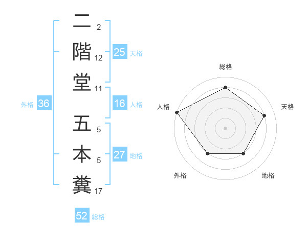 二階堂 五本糞さんを姓名の画数から五運を鑑定