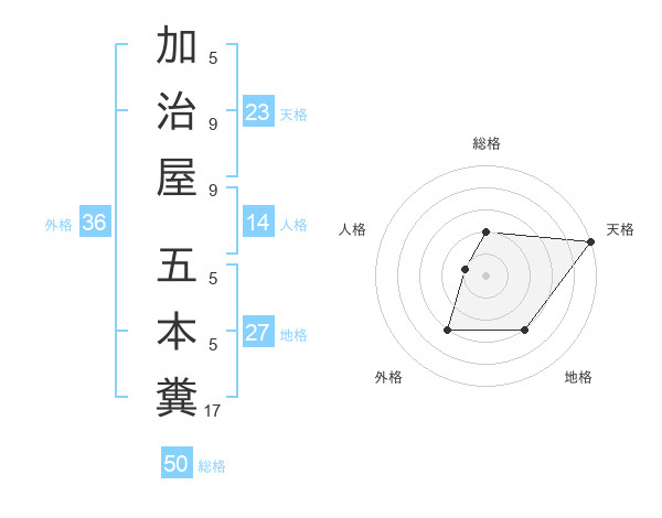 加治屋 五本糞さんを姓名の画数から五運を鑑定