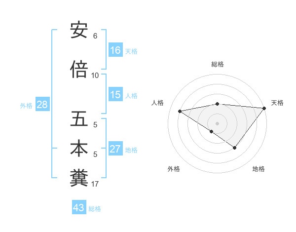 安倍 五本糞さんの天格は16画の5点!