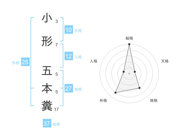 小形 五本糞さんを姓名の画数から五運を鑑定