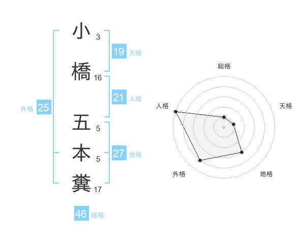 小橋 五本糞さんを姓名の画数から五運を鑑定
