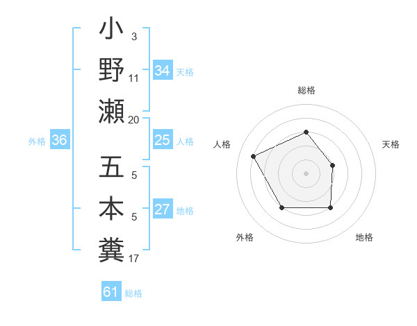 小野瀬 五本糞さんを姓名の画数から五運を鑑定