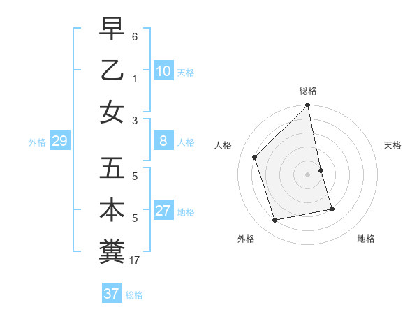 早乙女 五本糞さんを姓名の画数から五運を鑑定